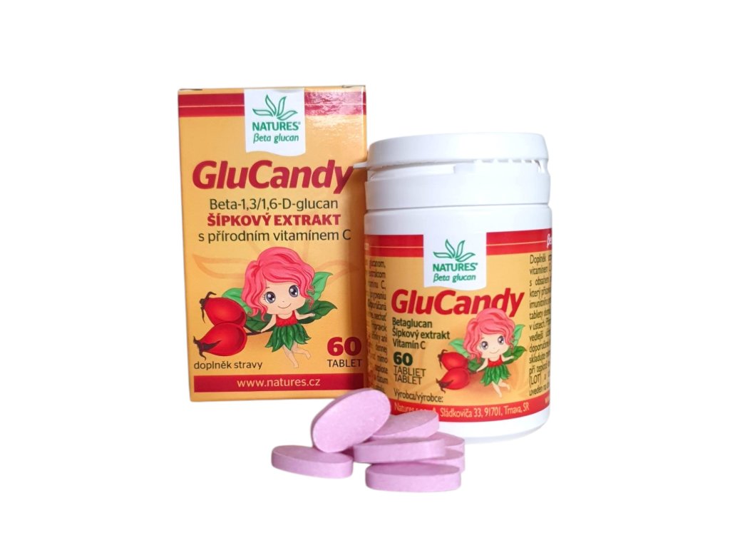 GluCandy je chutný výživový doplnok v tabletách, ktorý kombinuje Beta glukan, šípkový extrakt a prírodný vitamín C. Táto osvedčená kombinácia prirodzene prispieva k správnemu fungovaniu imunitného systému, chráni bunky pred oxidačným stresom a podporuje energetický metabolizmus.