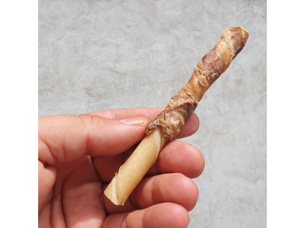 Špirála z byvolej kože je ideálnou voľbou pre majiteľov, ktorí hľadajú prírodný, bezpečný a poctivý žuvací pamlsok bez chémie.